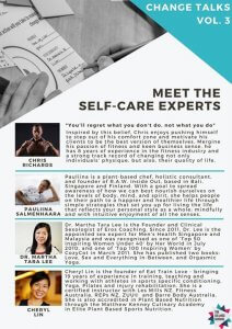 - April 5 – Part of Panel of 4 on Physiological: Self-care by The Change School, Singapore.