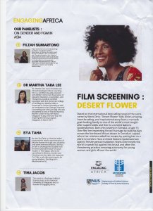 - Oct 13: Panelist at Desert Flower movie screening on Female Genital Mutilation (FGM) organised by UNWomen Singapore and NUS. An article summarising the session is here.
