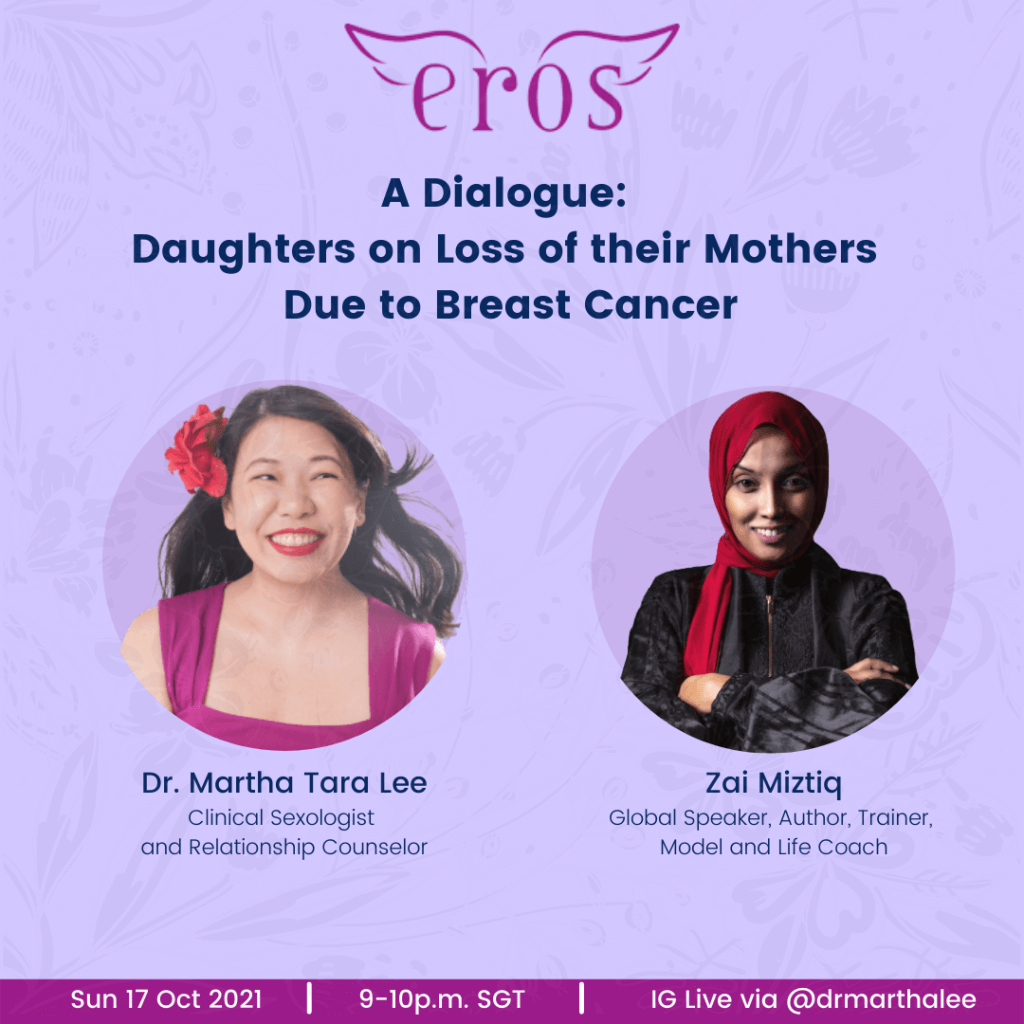 October is Breast Cancer Awareness month. My friend @zai.miztiq and I @drmarthalee are holding a virtual Instagram live to share about our experiences as daughters and caregivers of mothers who lost their battle with breast cancer. This will be a heartfelt and honest sharing with practical advice. Please join us!