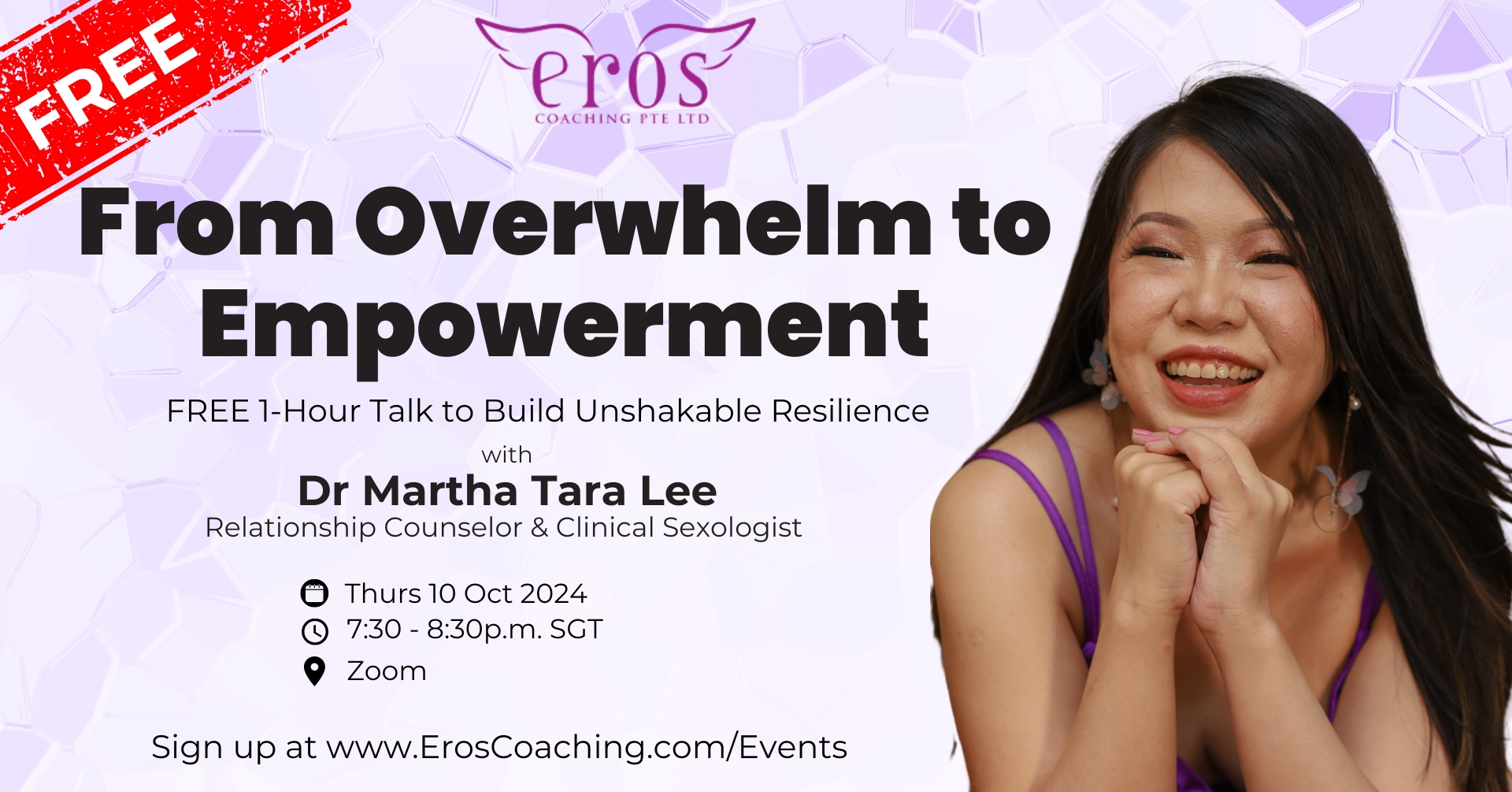 Are stress and overwhelm taking control of your life? Break free and reclaim your inner strength with our exclusive one-hour virtual workshop Led by seasoned relationship counselor and clinical sexologist Dr Martha Tara Lee of Eros Coaching, this session is your gateway to transforming stress into strength and building the resilience you need to thrive.